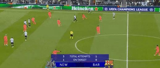第86分鍾,紐卡斯爾一次相對間接的邊路傳中,卻撕開了巴薩的後防線。中路包抄的巴恩斯推射破門。紐卡1-0領先。
