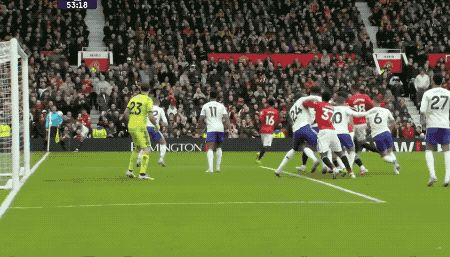 第53分鍾,B費開出角球,在3名維拉球員的夾擊下,卡塞米羅搶到前點,頭槌破門。