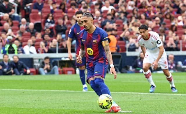 比賽一開始,巴薩就展現出強烈的進攻欲望。坎塞洛上半場兩次製造點球機會,拉菲尼亞兩次穩穩罰中,完成梅開二度,直接為巴薩打開局麵。隨後,奧爾莫和坎塞洛也分別建功,巴薩攻勢如潮。雖然塞維利亞由奧索和索烏兩次破門扳回兩球,但他們麵對巴薩的高強度壓迫和精準配合,始終難以逆轉局勢。