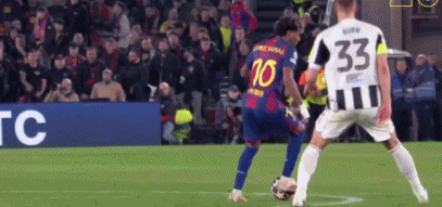 第45+7分鍾,特裏皮爾放倒拉菲尼亞吃到黃點套餐,亞馬爾操刀命中,巴薩3-2!