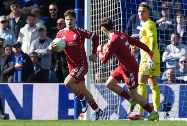 第30分鍾,利物浦將比分扳平,鄧克出現失誤,凱爾凱茲直接麵對門將,將球打進。1-1!