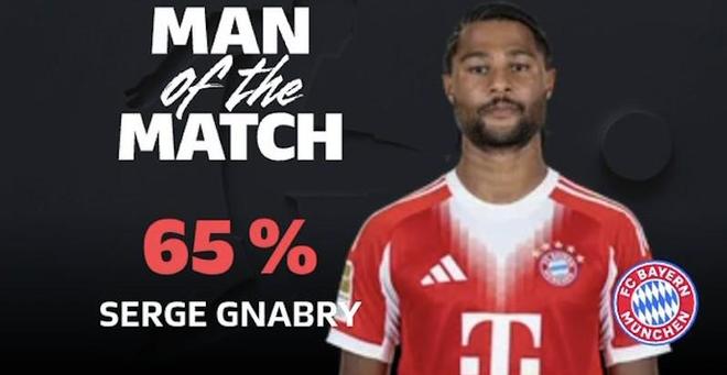 - 梅開二度,格納布裏當選拜仁vs柏林聯合全場最佳球員