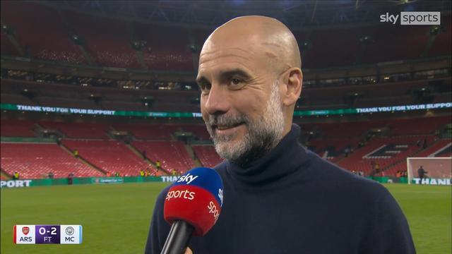 率隊在英格蘭聯賽杯決賽2-0擊敗阿森納成功奪冠之後,曼城主教練瓜迪奧拉接受了來自天空體育的采訪。
